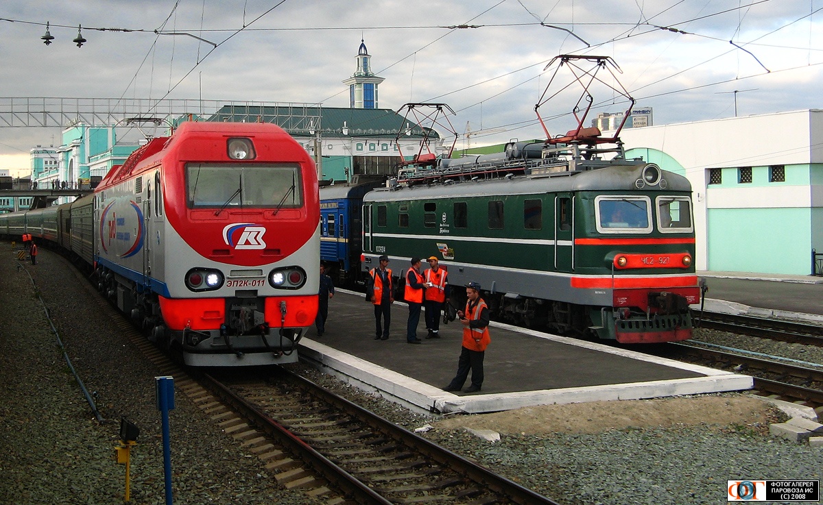 | «Смена поколений». Электровозы ЧС2-921 и ЭП2К-011 на ст. Новосибирск-Главный, Новосибирская обл. Автор: Eagle1812 | Фото сделано 18.VIII.2008, опубликовано 28.VIII.2008.