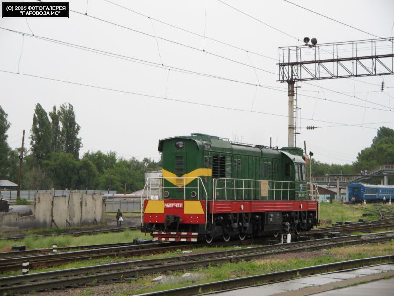 | Тепловоз ЧМЭ3Т-6531 { ChME3T-6531 diesel shunter }, ст. Алматы-II { Almaty-II station }, Алма-Ата Автор: A. N. | Фото сделано 12.VI.2005, опубликовано 27.VI.2005.