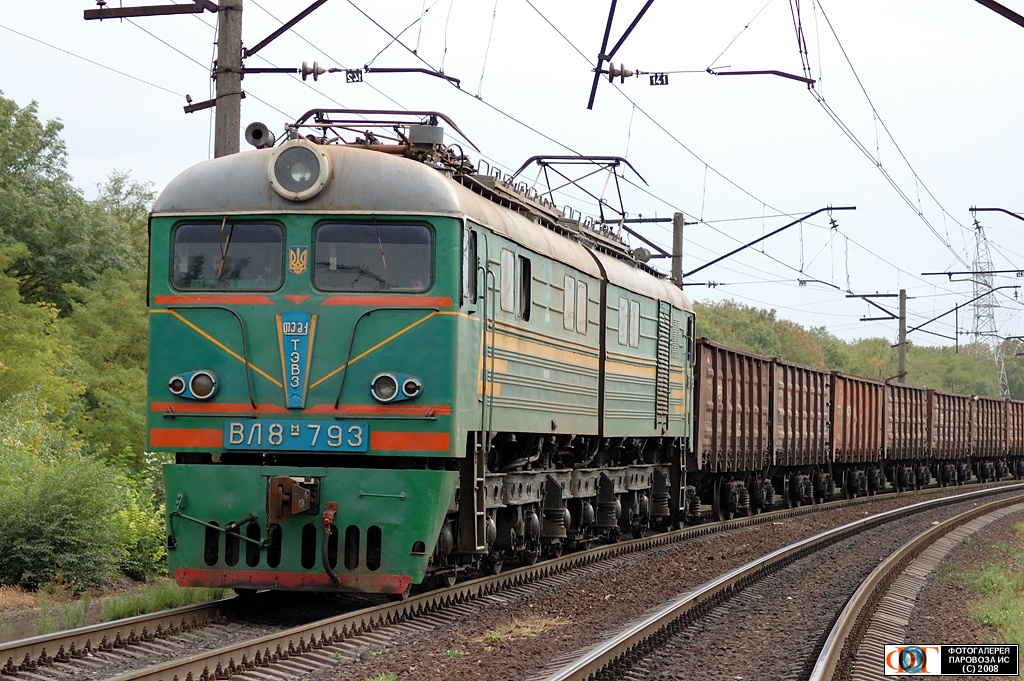 | Электровоз ВЛ8М-793, окрестности о.п. 1249 км, г. Мариуполь, Донецкая обл. Автор: Орлов Д. | Фото сделано 21.IX.2008, опубликовано 20.X.2008.