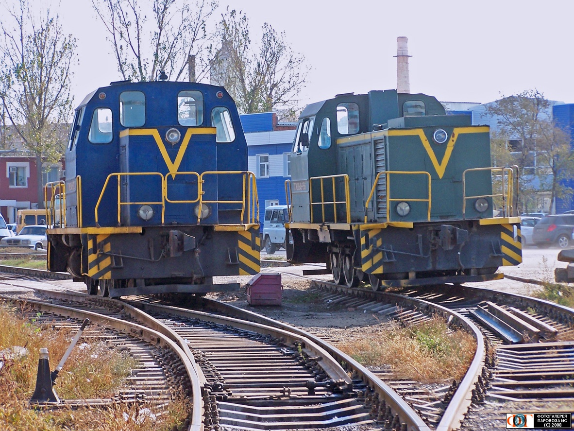 | Тепловозы ТГМ23В48-2120 и ТГМ23В48-856 на территории фирмы ЭЛКО, г. Астрахань, Астраханская обл. Автор: astrahanezz | Фото сделано 24.X.2008, опубликовано 31.X.2008.