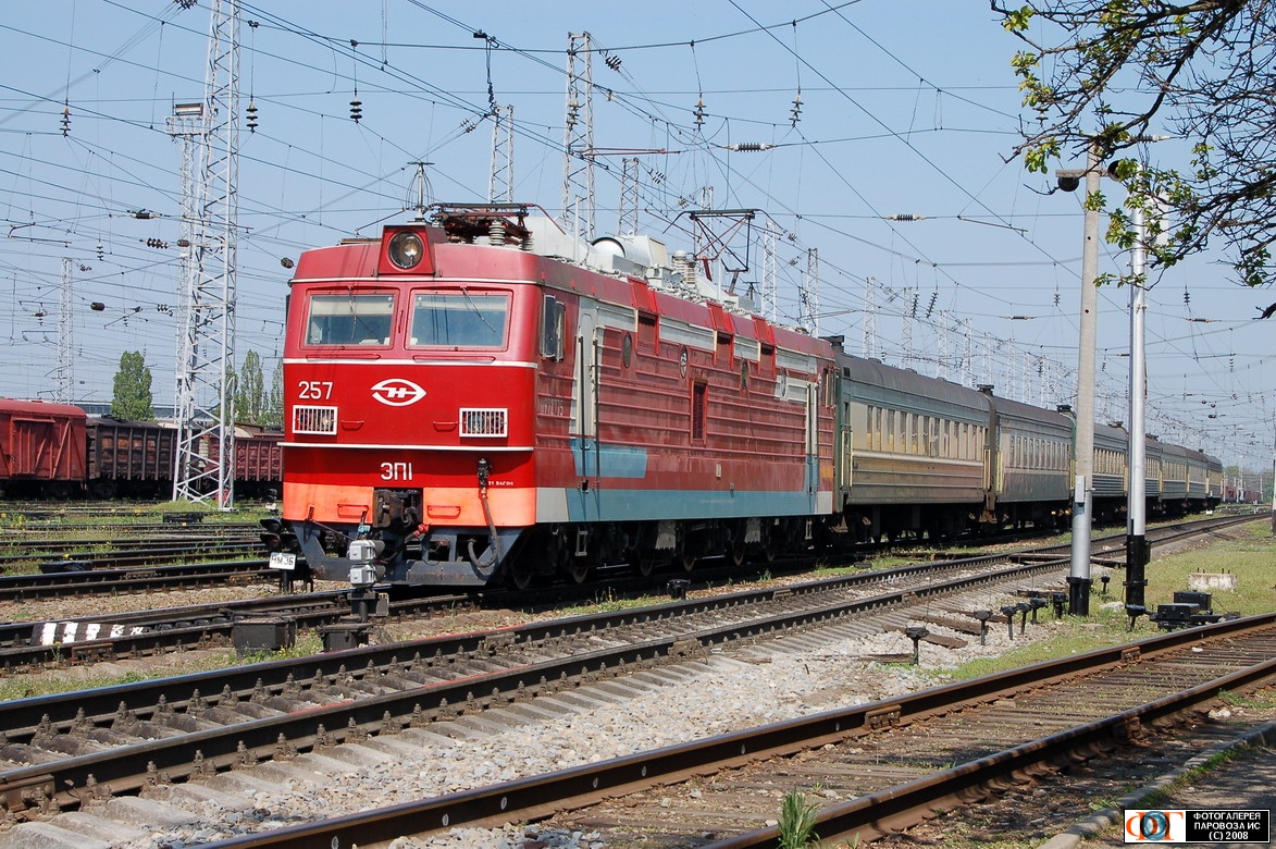 | Электровоз ЭП1-257 с поездом №122 Санкт-Петербург - Владикавказ прибывает на ст. Тихорецкая, Краснодарский край Автор: Stef | Фото сделано 6.V.2007, опубликовано 6.XII.2008.