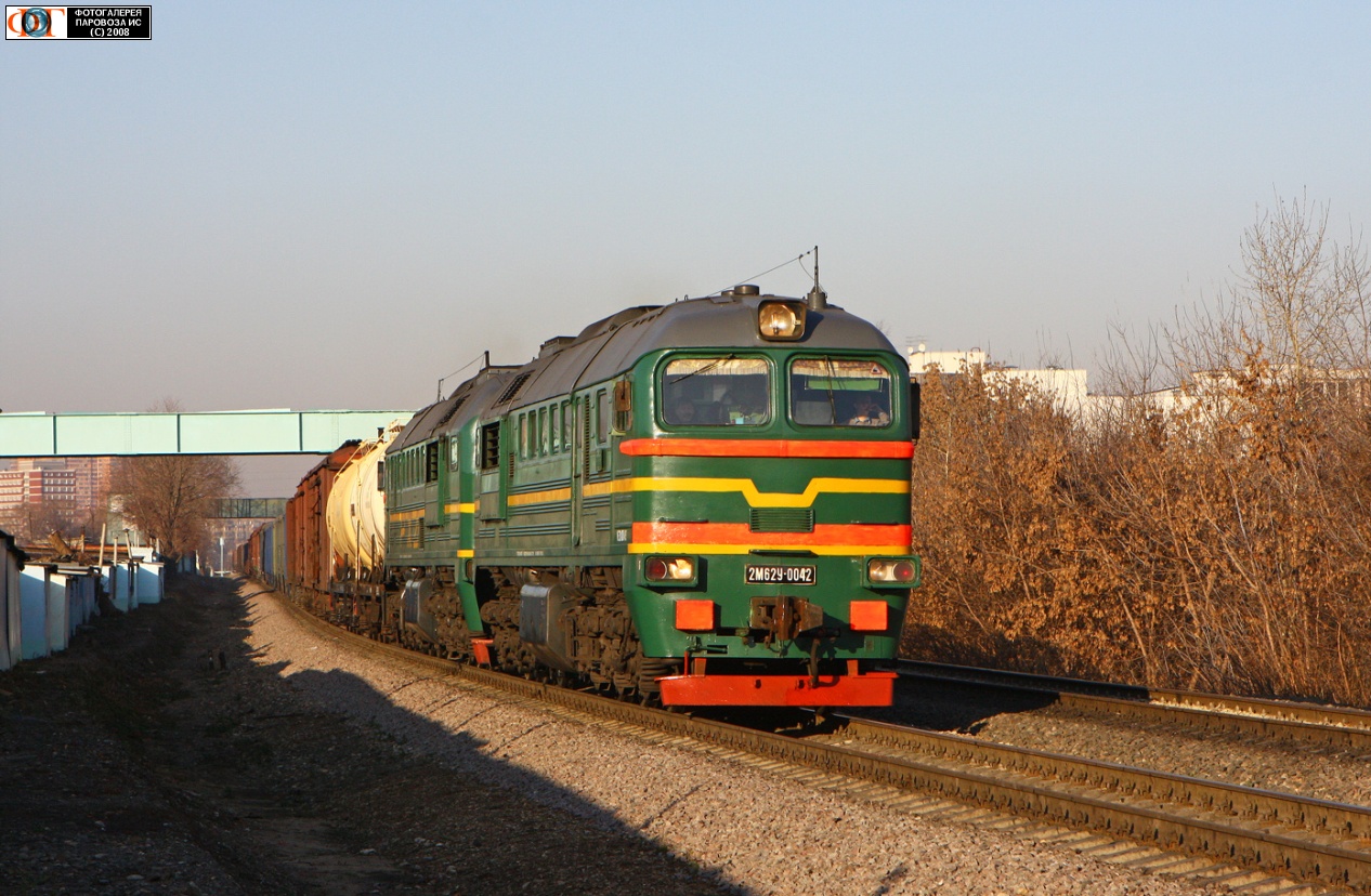 | Тепловоз 2М62У-0042 с грузовым составом, перегон Серебряный Бор - Пресня, МОЖД, Москва Автор: Дмитрий Зю. | Фото сделано 12.XI.2008, опубликовано 9.XII.2008.