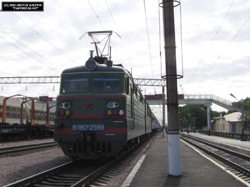 | Электровоз ВЛ80С-2588 { VL80S-2588 electric locomotive }, ст. Отар { Otar station }, Жамбылская область Автор: A. N. | Фото сделано 26.VI.2005, опубликовано 17.VII.2005.
