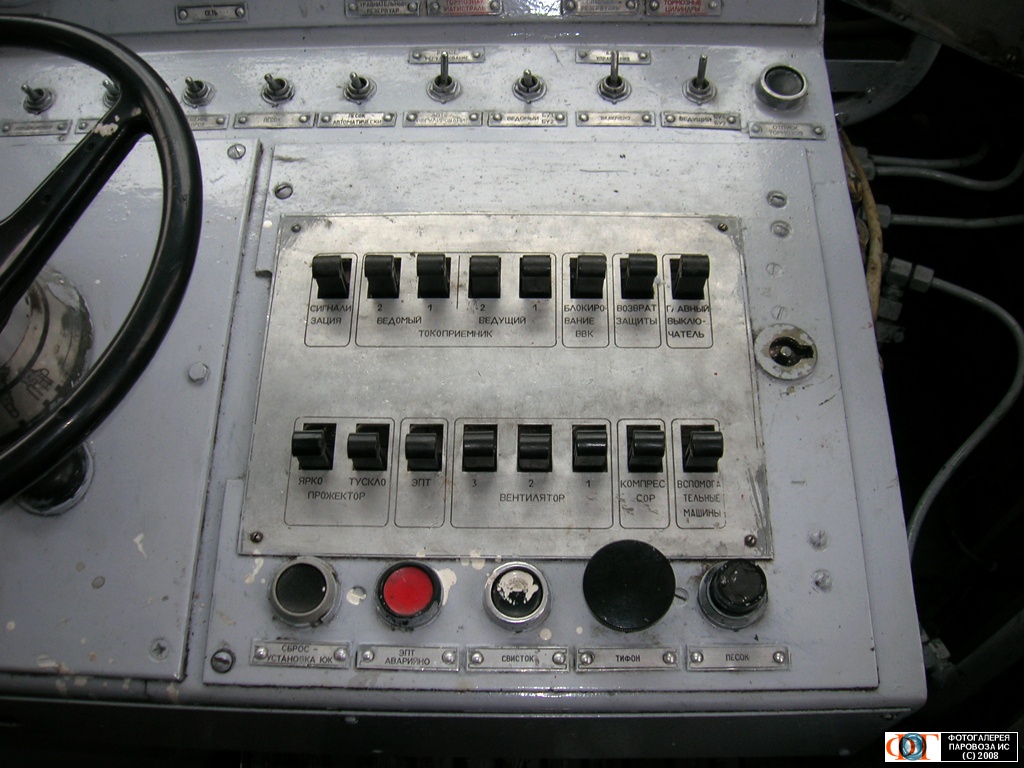 - Да, знаю, что в схеме ЧС2 и ЧС7 быстродействующий выключатель имеет номер 021 и что быстродействующие выключатели тяговых двигателей на этих же самых ВЛ65 и ЭП1 имеют тип ВБ-21, но ничего поделать не могу - эта коробка с тумблерами называется именно так, БВ-21. Впервые БВ-21, как и вообще такой пульт, появился на ВЛ85, здесь же, на ВЛ65, назначение изменилось всего у одного тумблера - исчез тумблер "Вентилятор №4", так как у ВЛ65 на один вентилятор меньше (ещё раз хочу подчеркнуть немалые конструктивные различия между ВЛ85 и ВЛ65!), теперь тумблер включает электропневматический тормоз. Да переименовался тумблер "Фазорасщепитель", из-за отсутствия последнего теперь на БВ-21 написано "Вспомогательные машины" -- Vivan755
