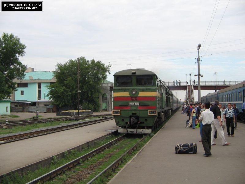 | Тепловоз 2ТЭ10М-3644 { 2TE10M-3644 diesel locomotive }, ст. Уральск { Uralsk station }, Западно-Казахстанская область Автор: A. N. | Фото сделано 28.VI.2005, опубликовано 18.VII.2005.