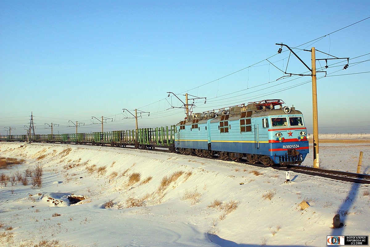 Электровоз ВЛ80С-1334 с грузовым поездом. Перегон Караганда-Сорт. - Жана Караганды, Карагандинская область