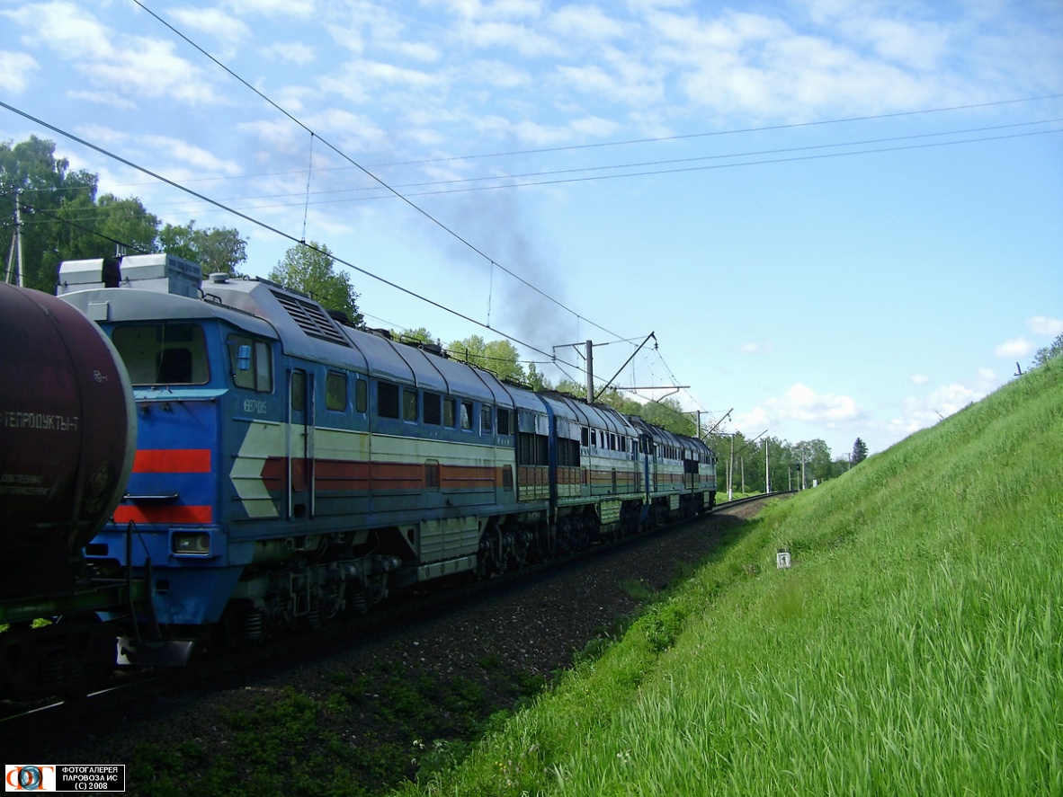| Тепловозы 2ТЭ116-1710 и 2ТЭ116-1716 на перегоне ст. Волоколамск - ст. Благовещенское, участок от ст. Волоколамск до ст. Шаховская, Московская обл. Автор: Ильин Сергей | Фото сделано 31.V.2008, опубликовано 8.I.2009.