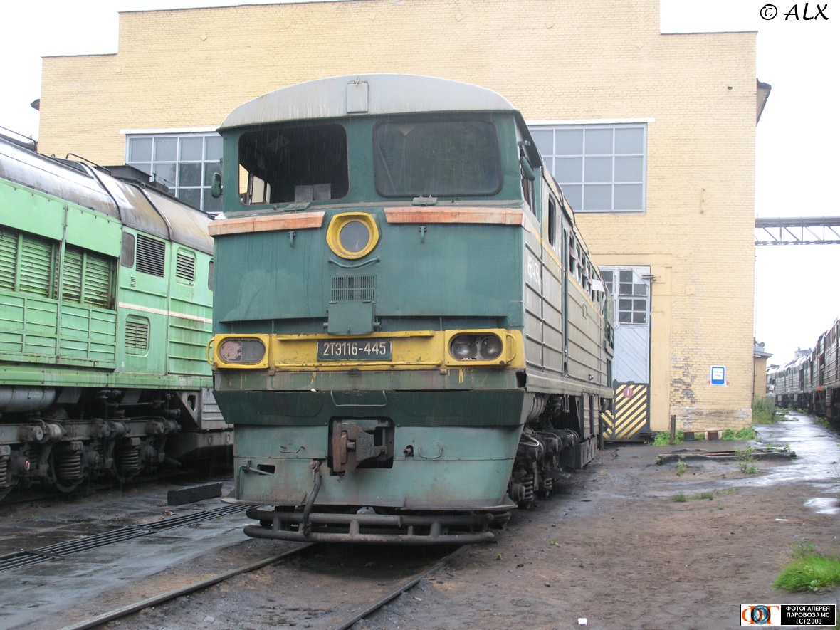| Секция Б тепловоза 2ТЭ116-445 (бывший 2ТЭ116-220), депо СПб-Витебский, Санкт-Петербург Автор: ALX aka Алексей Лаушкин | Фото сделано 8.VIII.2008, опубликовано 7.I.2009.