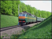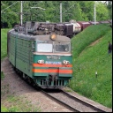 | Электровоз ВЛ10У-150 с рельсосмазывателем { VL10U-150 electric locomotive with a rail oiler }, пл. Строитель { Stroitel station }, Московская обл. Автор: Илья Антоновский | Фото сделано 3.VII.2005, опубликовано 21.VII.2005.