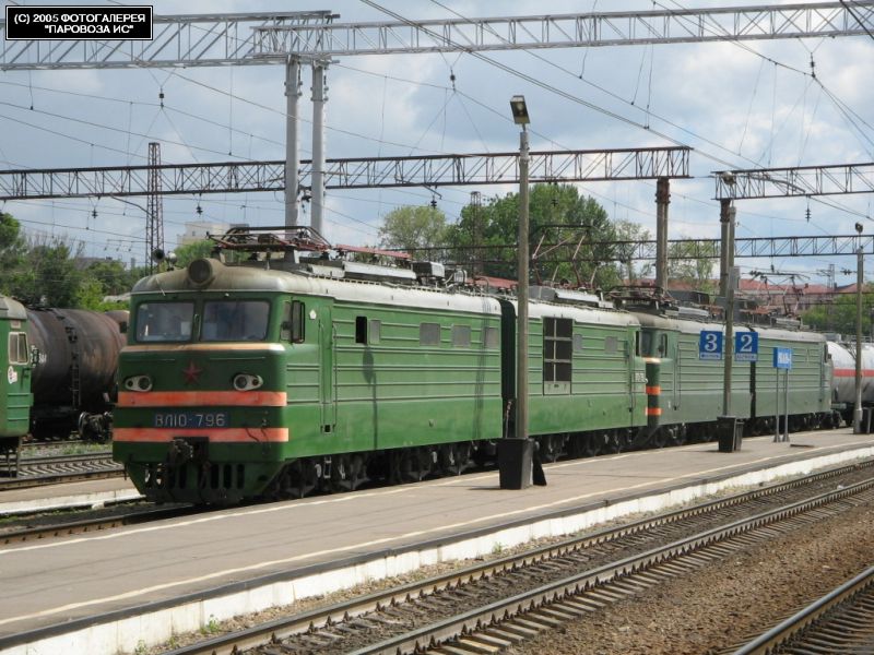 | Электровозы ВЛ10-796 и ВЛ10У-298 { VL10-796 and VL10U-298 electric locomotives }, ст. Рязань-I { Ryazan-I station }, Рязанская обл. Автор: A. N. | Фото сделано 4.VII.2005, опубликовано 22.VII.2005.