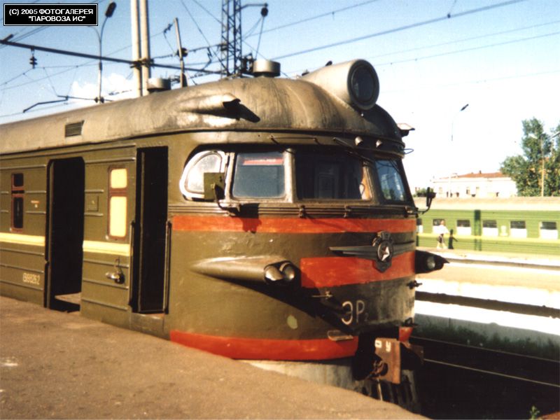 | Электропоезд ЭР2-913 { ER2-913 EMU train }, ст. СПб.-Витебский { St.-P.-Vitebsky station }, Санкт-Петербург Автор: 1030 | Фото сделано 14.VIII.1996, опубликовано 26.VII.2005.