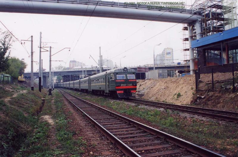 | Электропоезд ЭР2Т-7137 { ER2T-7137 EMU train }, Беговая { Begovaya }, Москва Автор: Недовиченко А. | Фото сделано VII.2002, опубликовано 29.XII.2002.