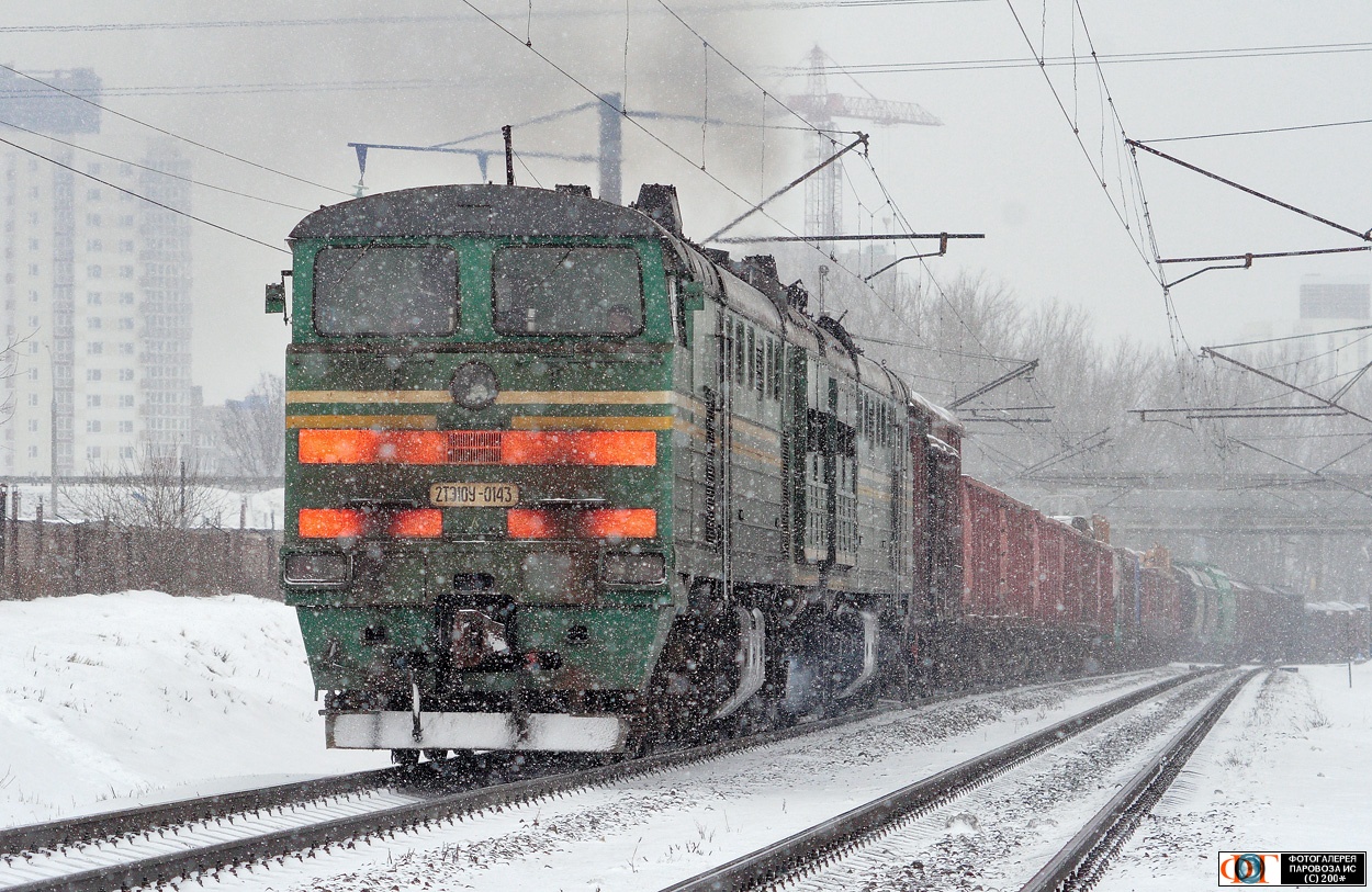| Тепловоз 2ТЭ10У-0143, перегон Минск-Сортировочный - Помыслище, Минск Автор: Михаил Шамне | Фото сделано 1.II.2009, опубликовано 15.II.2009.
