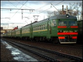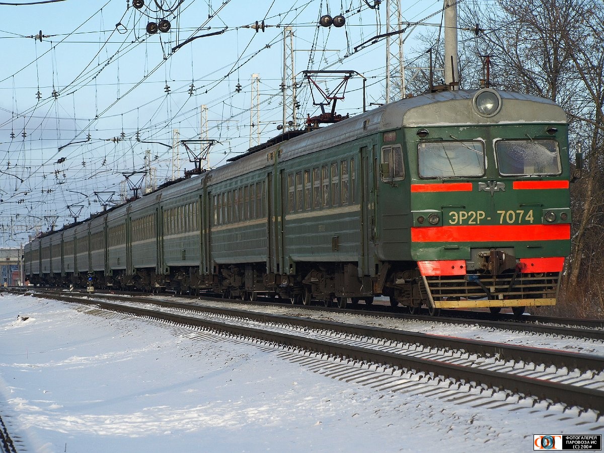 | Электропоезд ЭР2Р-7074 прибывает на ст. Лобня, Московская обл. Автор: Олег В. | Фото сделано 6.I.2009, опубликовано 16.II.2009.