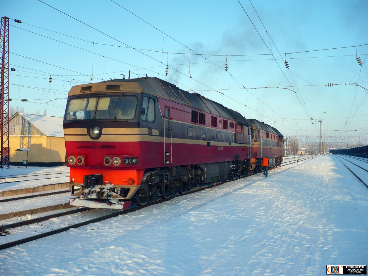 | Тепловозы ТЭП70-0497 и ТЭП70-0509 на ст. Грязи-Воронежские, Липецкая обл. Автор: Яков | Фото сделано 5.I.2009, опубликовано 26.II.2009.
