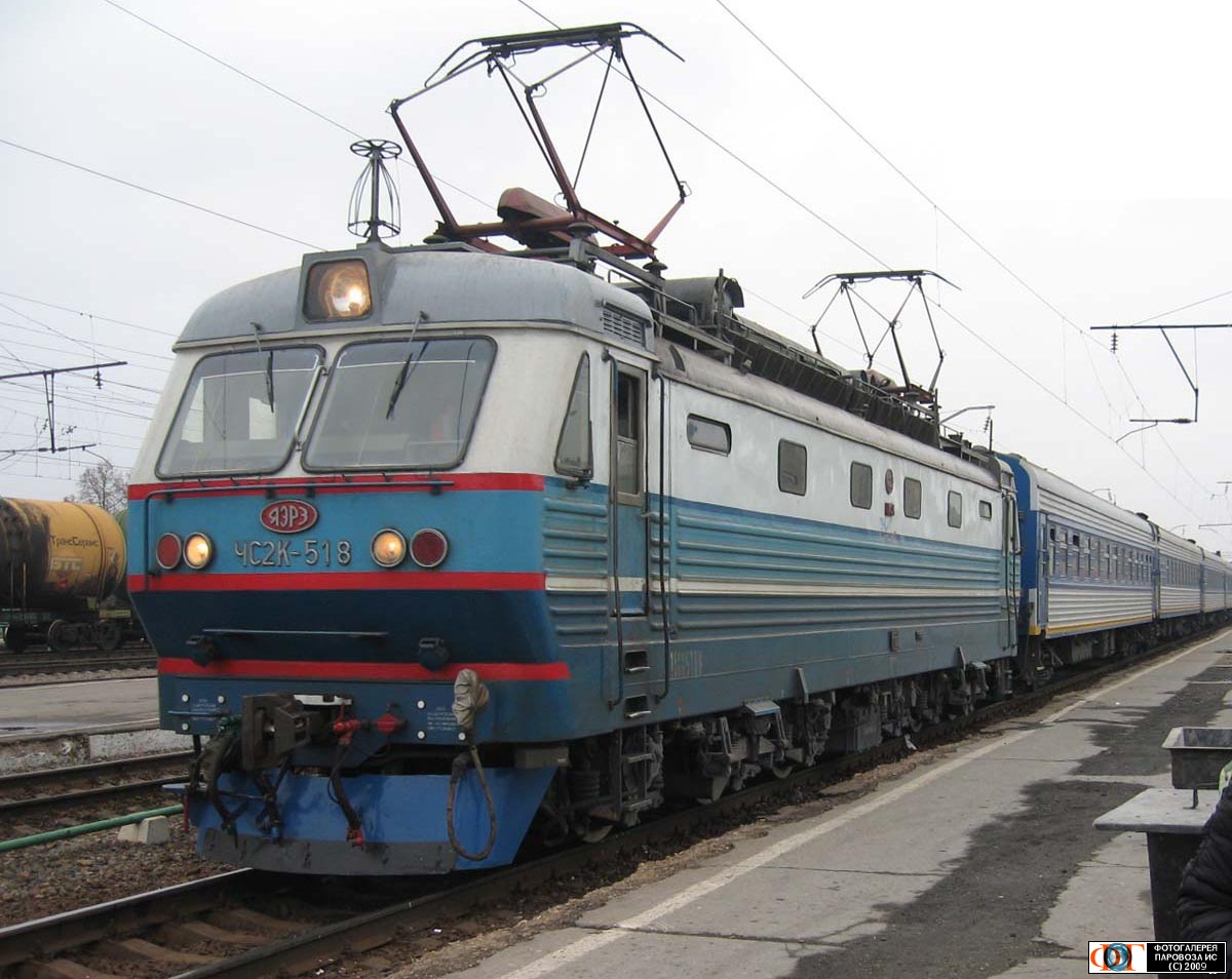 | Электровоз ЧС2К-518 с поездом Москва - Новороссийск прибывает на станцию Рязань-II, Рязанская обл. Автор: Злой_викинг | Фото сделано 2.XI.2008, опубликовано 23.II.2009.