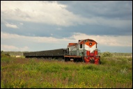 | Вагон для цемента { Concrete hopper car }, ст. Фокино { Fokino station }, Брянская обл. Автор: Чупринин М. | Фото сделано 9.VII.2005, опубликовано 4.VIII.2005.