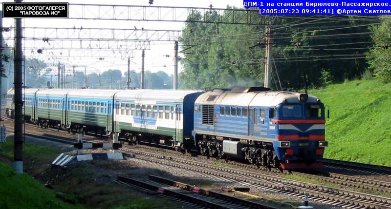 | Дизель поезд ДПМ-1 (тепловоз 2М62У-0127) в последний день работы { The last day of DPM-1 DMU train }, ст. Бирюлево-Пасс. { Biryulevo-Pass. station }, Москва Автор: Артём Светлов | Фото сделано 23.VII.2005, опубликовано 5.VIII.2005.