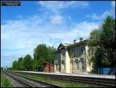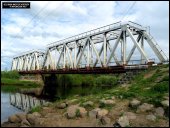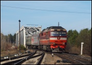 | Тепловоз М62 на мосту через р. Волчину { Series M62 diesel locomotive on the Volchina river bridge }, ст. Максатиха { Maksatikha station }, Тверская обл. Автор: Смирнов С. | Фото сделано 17.VII.2005, опубликовано 7.VIII.2005.