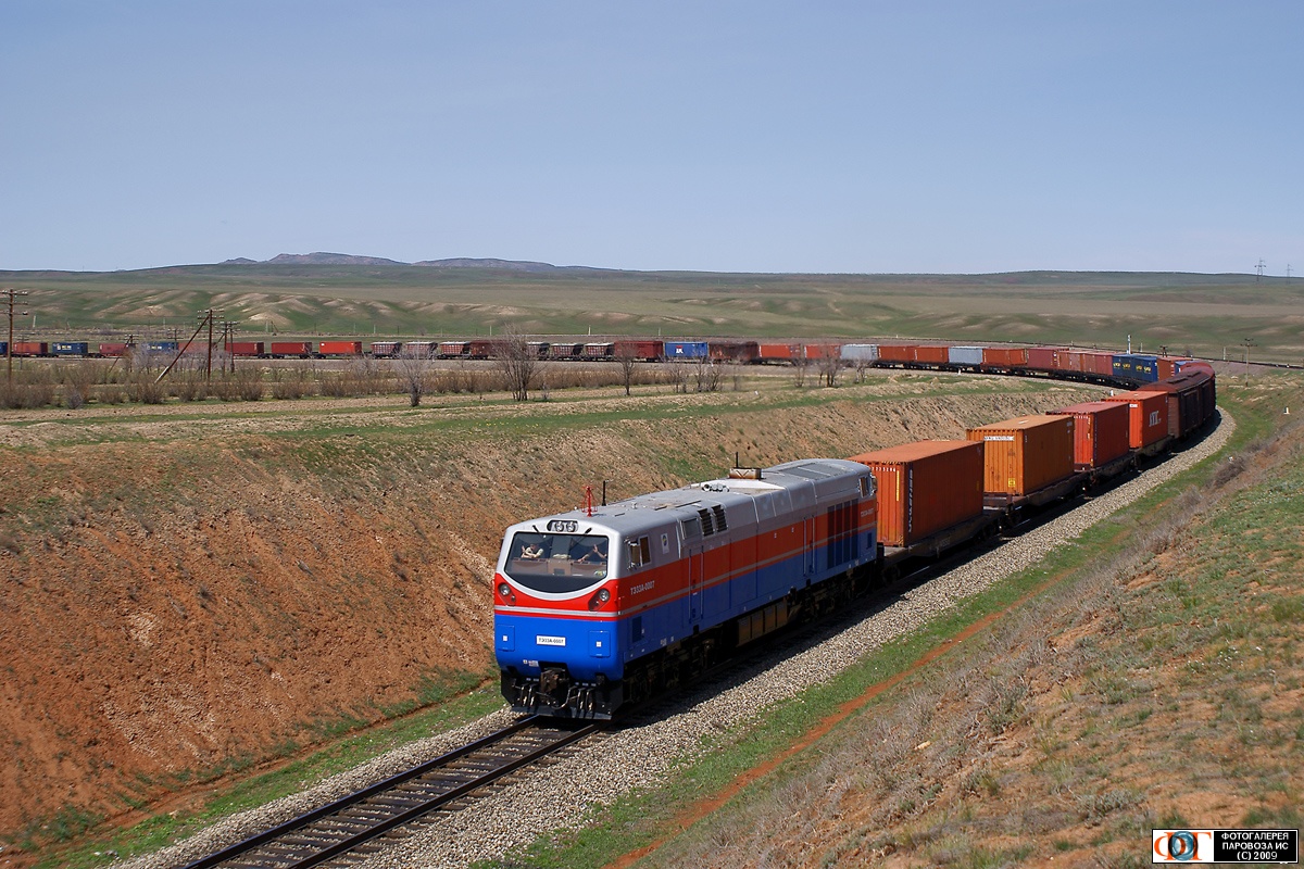 Тепловоз ТЭ33А-0007 с грузовым поездом, перегон Дос - Балгалы