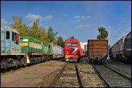 | Тепловоз ТЭП70БС-001 { TEP70BS-001 diesel locomotive }, Щербинка { Shcherbinka }, Москва Автор: Котов Олег | Фото сделано 6.VIII.2005, опубликовано 18.VIII.2005.