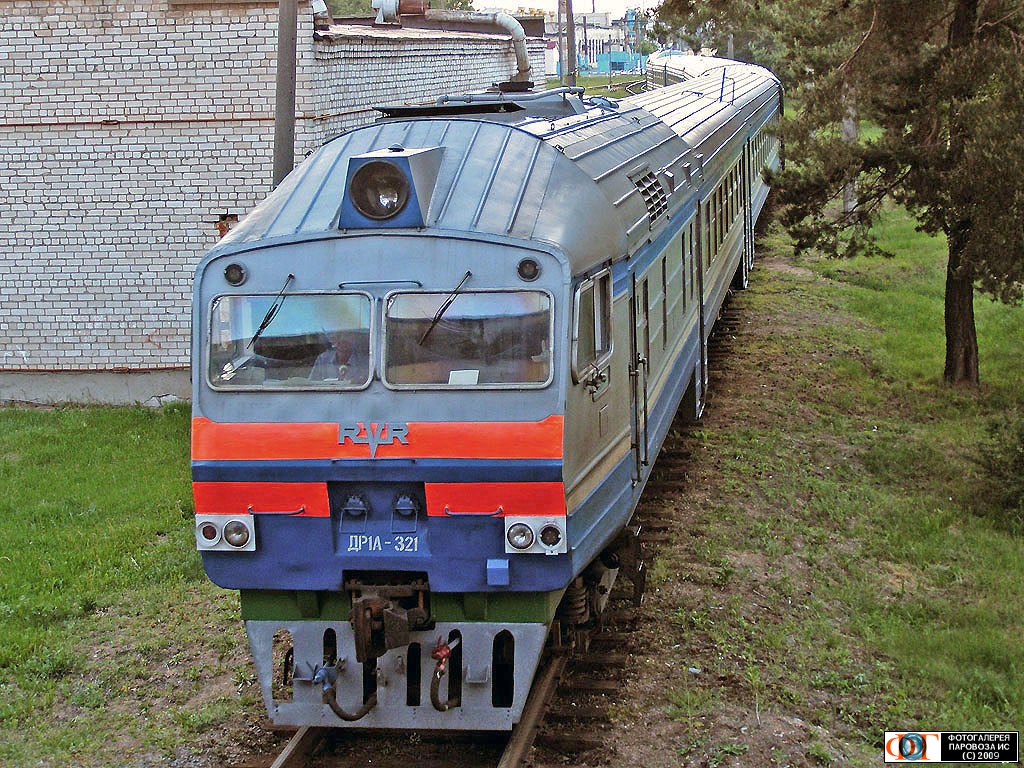 | Дизель-поезд ДР1А-321 заезжает в тупик, на ст. Барановичи-Полесские, Брестская обл. Автор: Владлен | Фото сделано 30.V.2009, опубликовано 4.VI.2009.