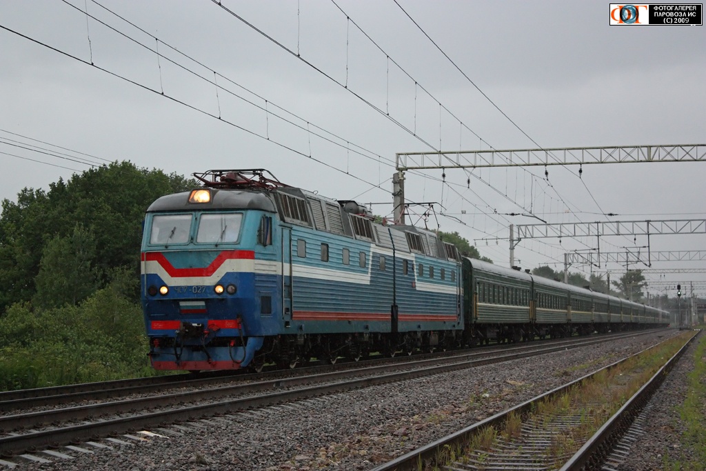 Электровоз ЧС7-027 с поездом, ст. Дорошиха, Тверская обл.