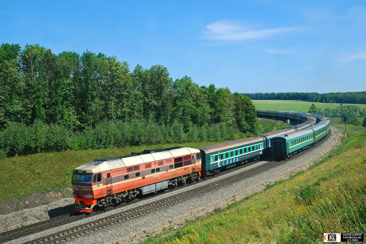 | Встреча поездов №79 Санкт-Петербург - Волгоград с тепловозом ТЭП70-0544 и №530 Анапа - Санкт-Петербург, перегон Малая Андреевка - Ефремов, Тульская обл. Автор: Lamanho | Фото сделано 11.VII.2009, опубликовано 3.VIII.2009.