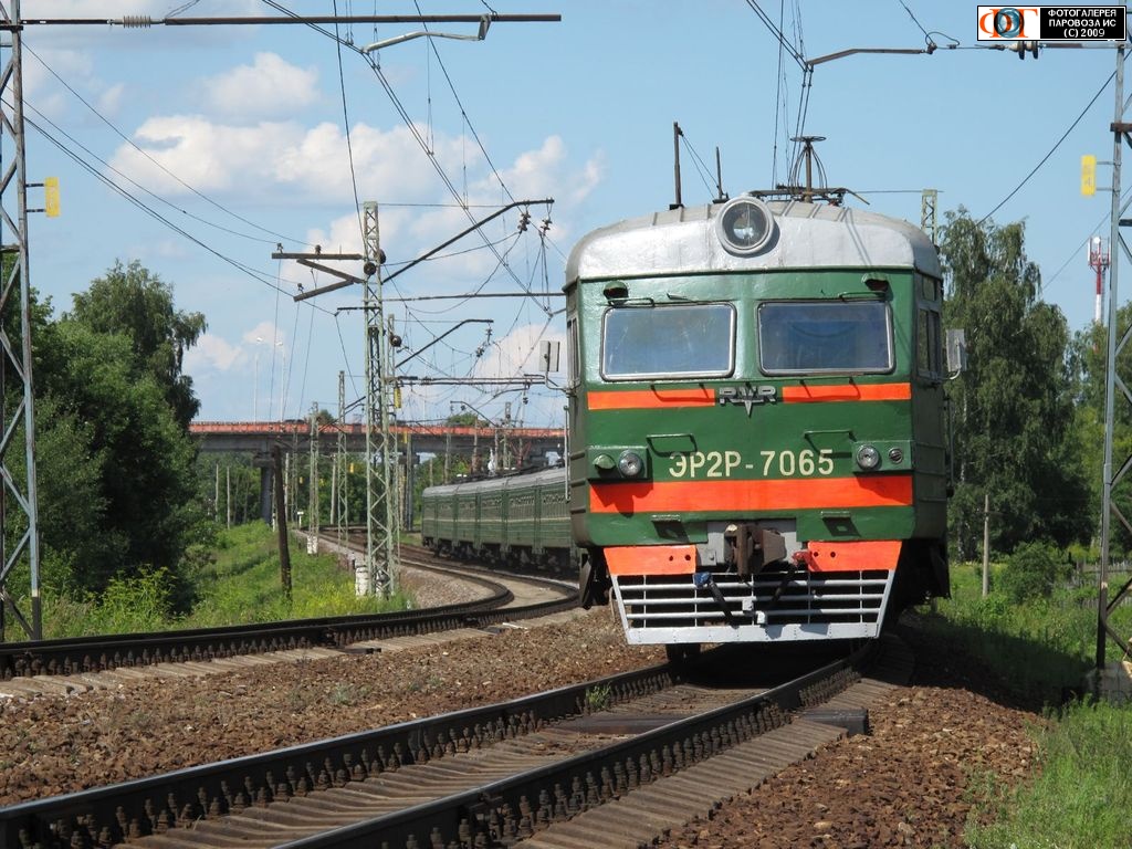 | "Уходя в дневной зной...". Электропоезд ЭР2Р-7065, перегон Яхрома - Дмитров, Московская обл. Автор: Владимир ( vl92m ) | Фото сделано 12.VII.2009, опубликовано 3.VIII.2009.