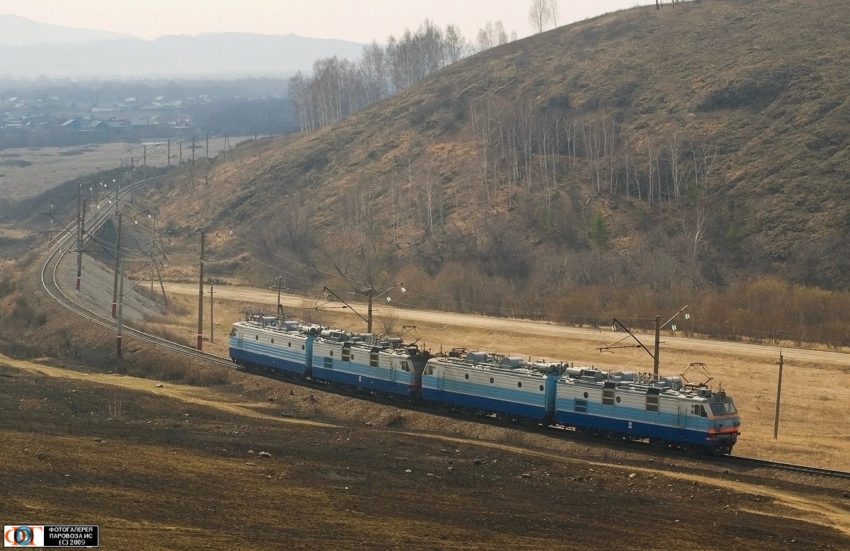 | Система электровозов ВЛ80СК-036/ВЛ80СК-146, перегон Новоабзаково - Ташбулатово, линия Белорецк - Магнитогорск, Башкортостан Автор: Баландин Д. | Фото сделано 1.V.2009, опубликовано 15.VIII.2009.