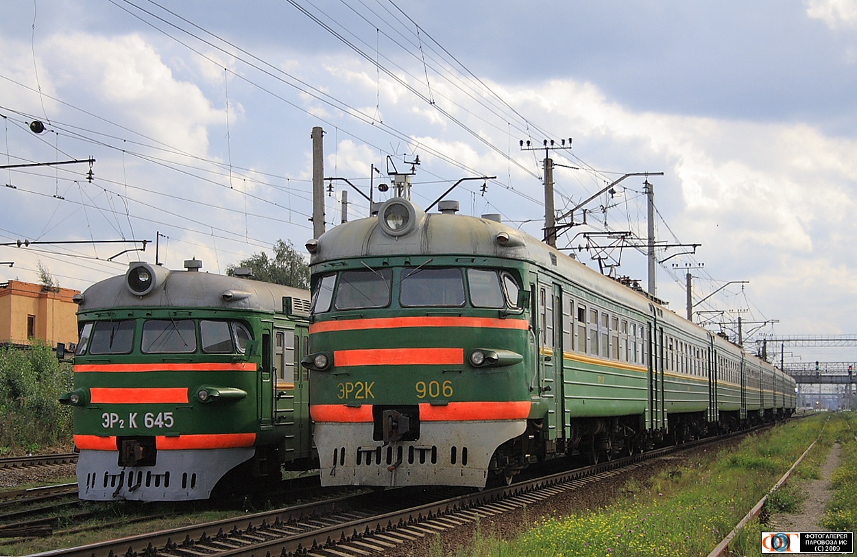 | "Старики-разбойники". Электропоезда ЭР2К-645 и ЭР2К-906, перегон СПб-Балтийский - Броневая, Санкт-Петербург Автор: electron | Фото сделано 3.IX.2009, опубликовано 12.IX.2009.