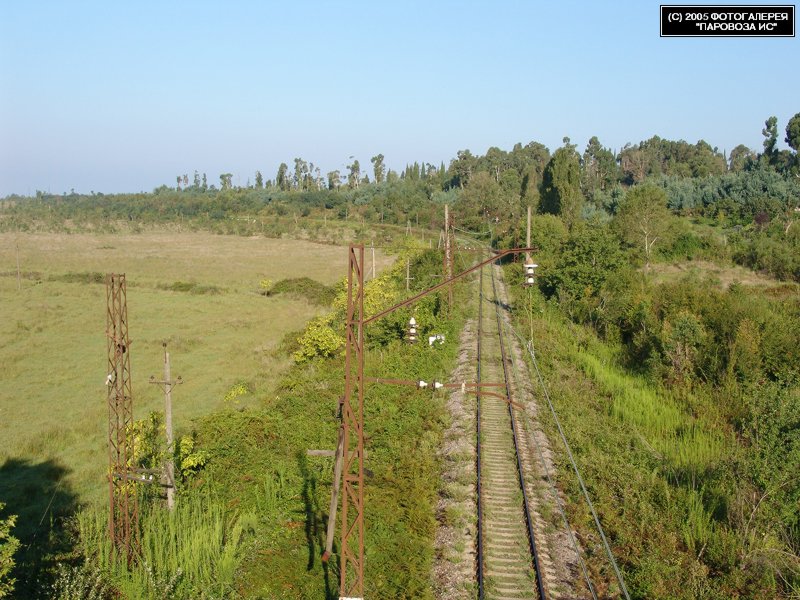 | Гагрский поворот { Turn to Gagry }, перегон Гагра - Бзыпта { Gagry - Myussera stretch }, Абхазия Автор: Котов Олег | Фото сделано 8.IX.2005, опубликовано 4.X.2005.
