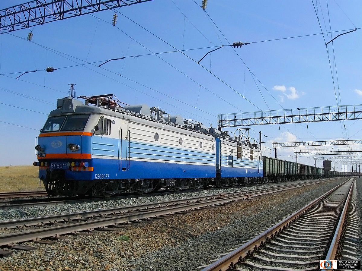 | Электровоз ВЛ80СК-404 с грузовым поездом на ст. Халилово, линия Орск - Оренбург, Оренбургская обл. Автор: Pahann4 | Фото сделано 21.VIII.2009, опубликовано 8.X.2009.