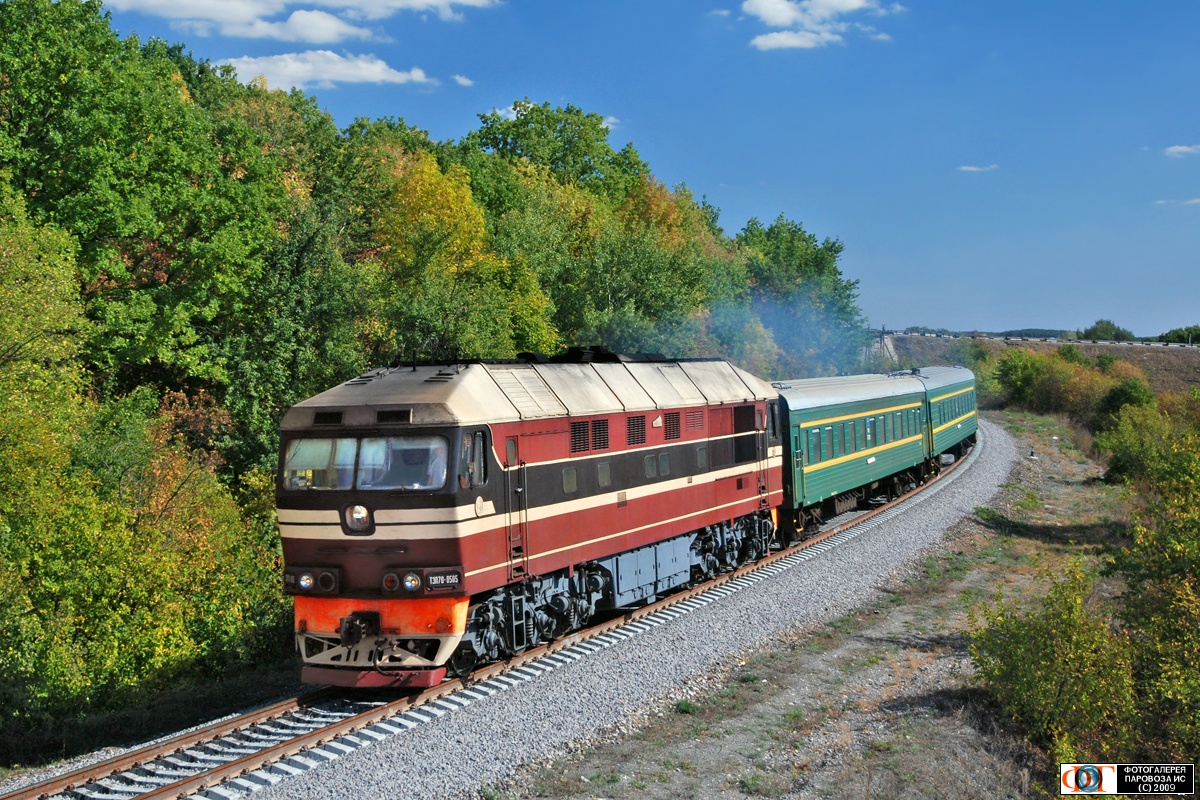 | Тепловоз ТЭП70-0505 с пригородным поездом Борисоглебск - Елец, перегон Борисоглебск - рзд. 667 км, Воронежская обл. Автор: Lamanho | Фото сделано 21.IX.2009, опубликовано 6.XII.2009.