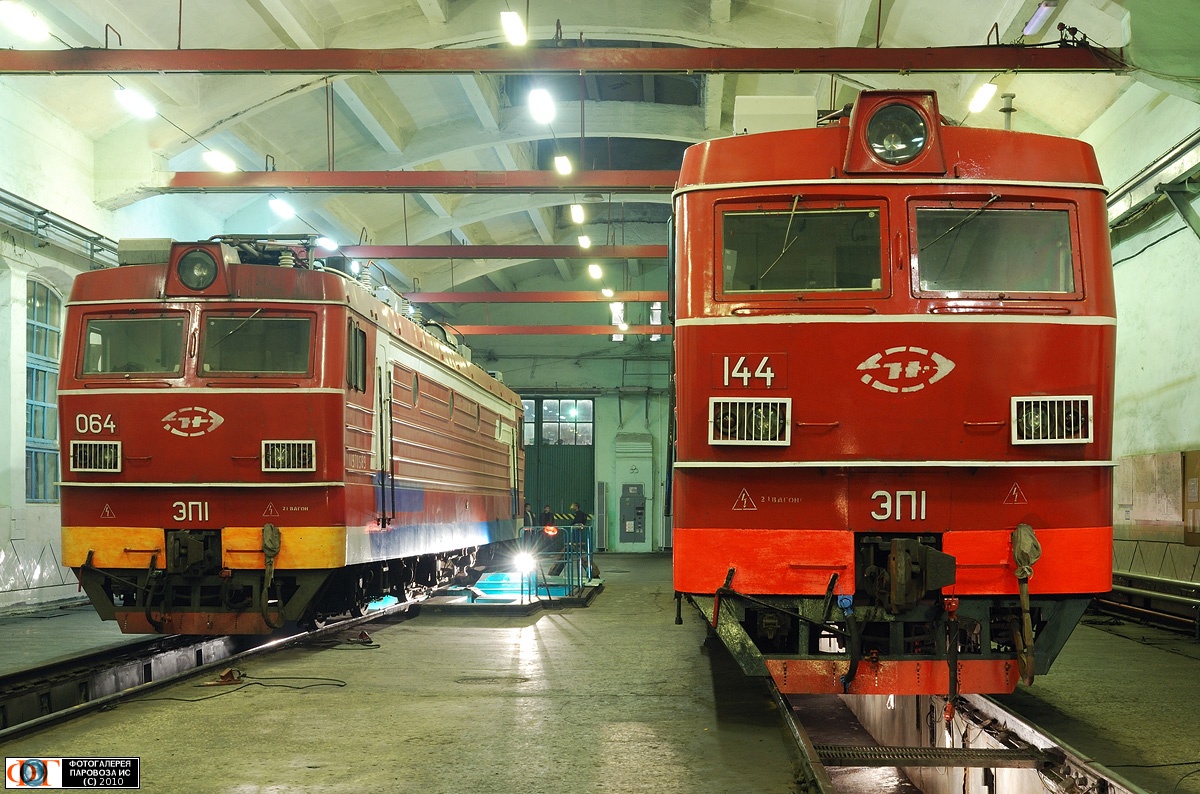 | Электровоз ЭП1-064 и ЭП1-144, депо ТЧ-2 Красноярск, Красноярский край Автор: Баландин Д. | Фото сделано 19.IX.2009, опубликовано 25.I.2010.