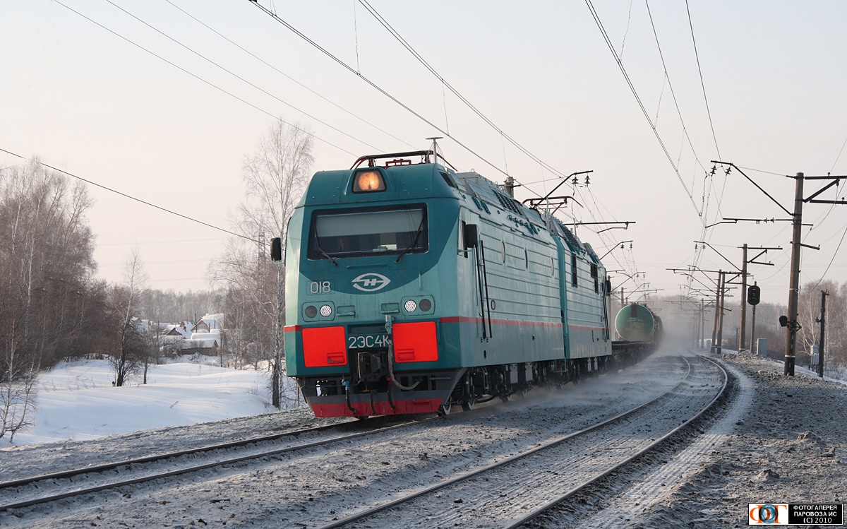 | Электровоз 2ЭС4К-018 с грузовым поездом, перегон Крахаль - Восточная, линия Обь - Проектная, Новосибирская обл. Автор: Кречетов Дмитрий | Фото сделано 7.II.2010, опубликовано 12.II.2010.