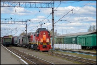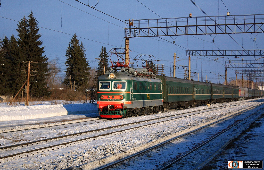 | Электровоз ЧС2-922 с пассажирским поездом, ст. Невьянск, Свердловская обл. Автор: кнут | Фото сделано 25.II.2010, опубликовано 4.III.2010.