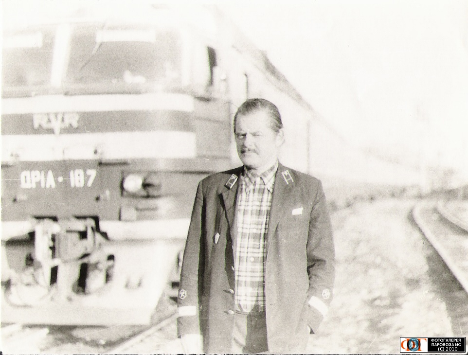 | Машинист Ефимов Сергей у дизель-поезда ДР1А-187, Латвия Автор: Imants (колл.) | Фото сделано 1984 г, опубликовано 29.III.2010.