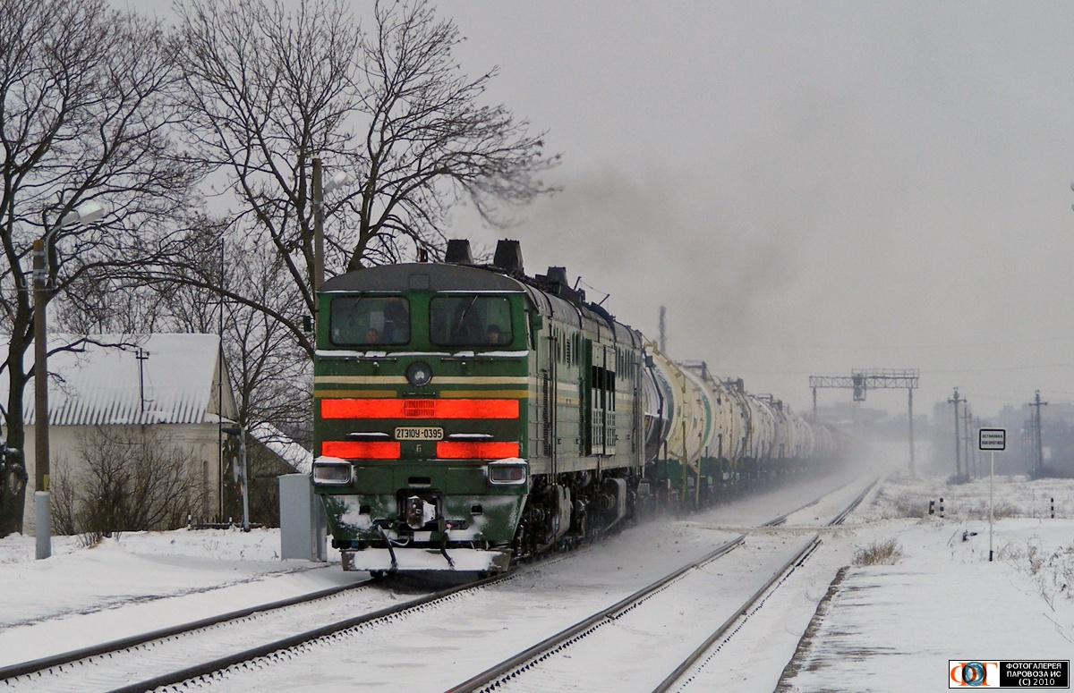 | Тепловоз 2ТЭ10У-0395, перегон Молодечно - Пруды, Минская обл. Автор: AlekszandrM. | Фото сделано 10.I.2010, опубликовано 23.III.2010.