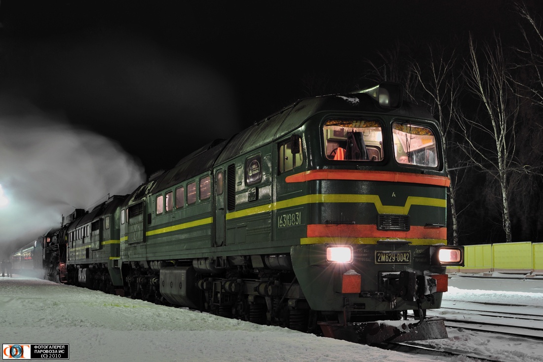 | Тепловоз 2М62У-0042 с поездом, ст. Узловая-I, Тульская обл. Автор: Арефьев В. | Фото сделано 8.I.2010, опубликовано 12.IV.2010.