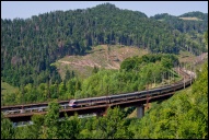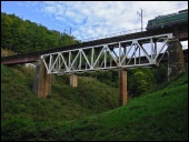 - Сразу за мостом начинается станция Скотарское, очень короткие на ней пути, что связано с горной местностью. Раньше там останавливались почти все поезда, по-этому их хвосты во время стоянки оазывались на этом мосту. Снято вот во время такой стоянки из окна 81-го поезда -- Зинькевич Ю.