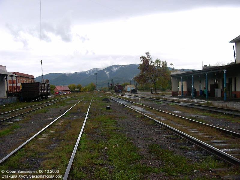 | Станция Хуст { Khust station }, Закарпатская обл. Автор: Зинькевич Ю. | Фото сделано 6.X.2003, опубликовано 11.X.2003.