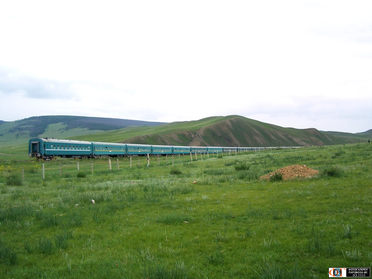 | Пассажирский поезд на перегоне рзд. Хонхор - Туул, Монголия Автор: Тэмулэн.Б | Фото сделано 22.VII.2006, опубликовано 7.VI.2010.