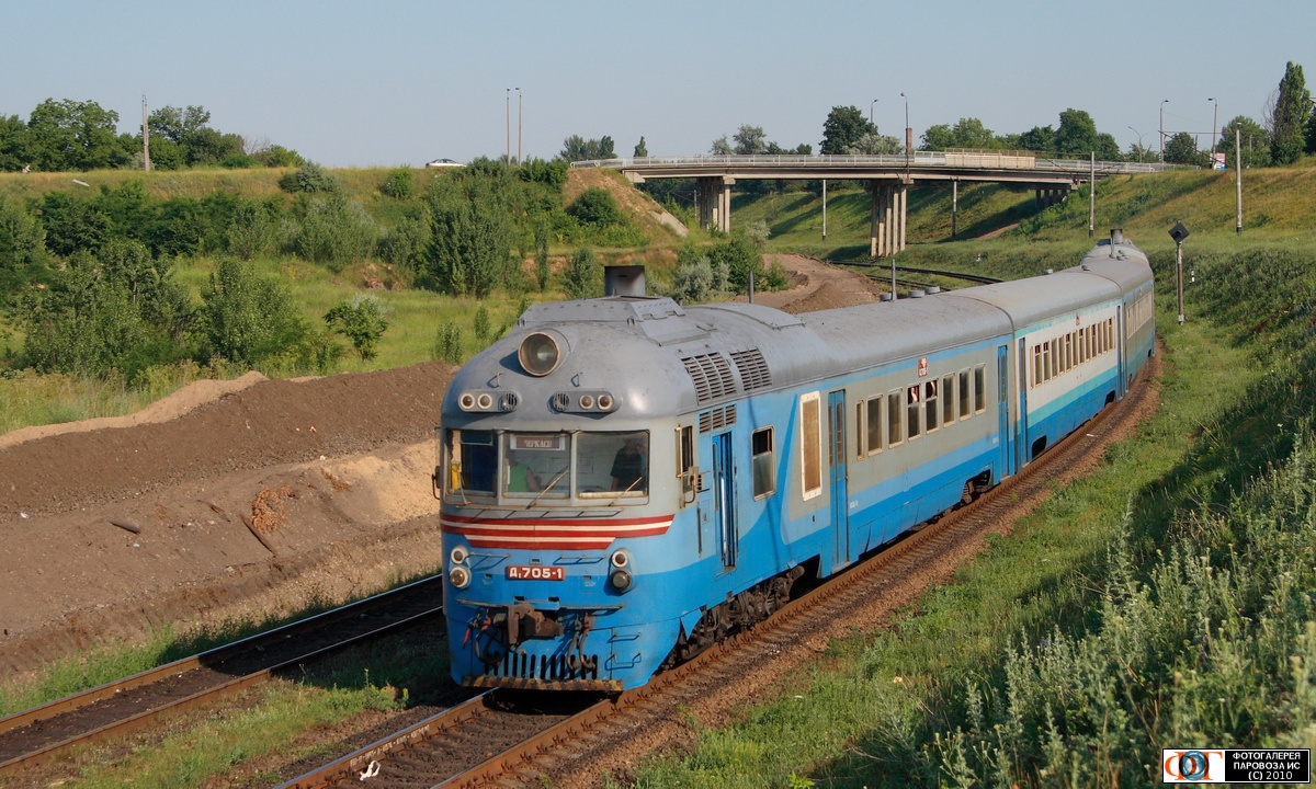| Дизель-поезд Д1-705, перегон ст. Смела - ст. им. Тараса Шевченко ОдЖД, Черкасская обл. Автор: SDA | Фото сделано 29.VI.2009, опубликовано 22.VII.2010.