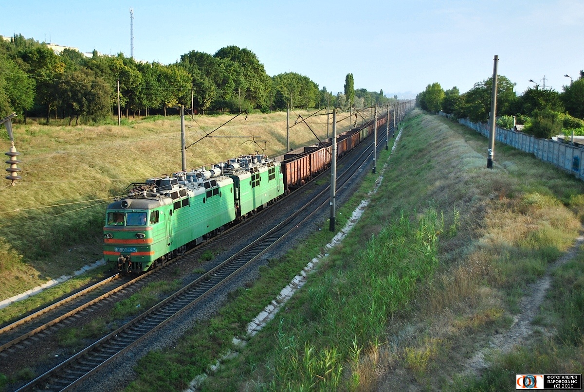 | Электровоз ВЛ80Т-1443 с грузовым составом проходит путепровод Окружной дороги с ул. Заболотного, перегон Одесса-Восточная - Одесса-Сортировочная, Од.ЖД, Одесская обл. Автор: Phantom_3d | Фото сделано 10.VIII.2010, опубликовано 20.VIII.2010.