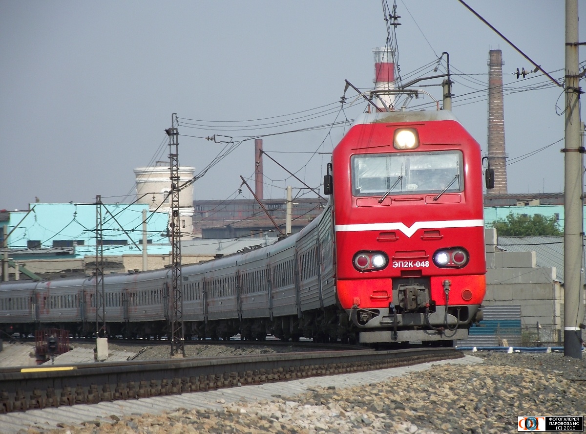 | Электровоз ЭП2К-048 с поездом №59 Новокузнецк - Кисловодск, станция Омск-Пассажирский, Омская обл. Автор: Владислав Фоменко | Фото сделано 19.VIII.2010, опубликовано 9.IX.2010.