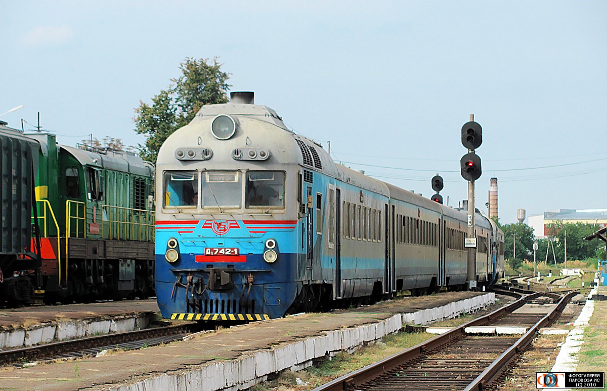 | 8-вагонный дизель-поезд Д1-742 прибывает на станцию Смела, Черкасская обл. Автор: Олег Поляк | Фото сделано 4.IX.2010, опубликовано 19.IX.2010.