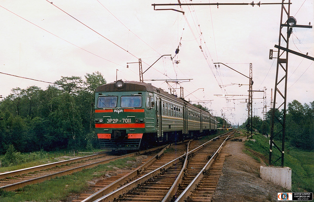 | Электропоезд ЭР2Р-7011, ст. Храпуново, Московская обл. Автор: Фёдор Яшин† (колл.) | Фото сделано 4.VI.1994, опубликовано 24.IX.2010.
