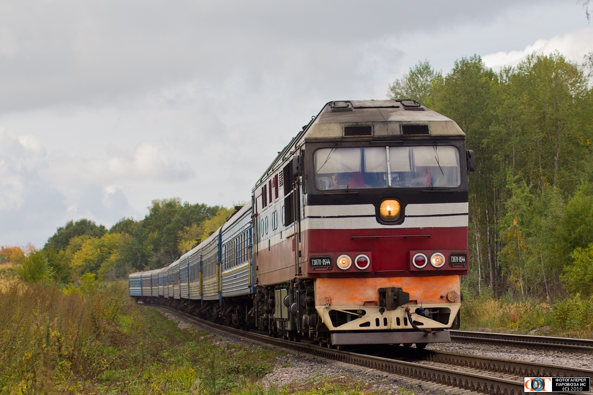Тепловоз ТЭП70-0544 с поездом №11 Луганск - Москва, перегон блок-пост Пчеловодное - Ожерелье