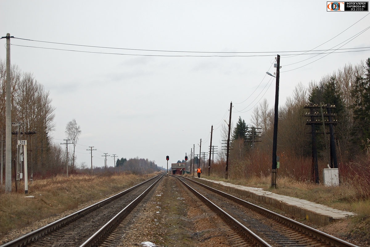 | Разъезд Дуловская, вид в сторону Пскова, Псковская обл. Автор: OldNick | Фото сделано 5.XI.2009, опубликовано 28.X.2010.